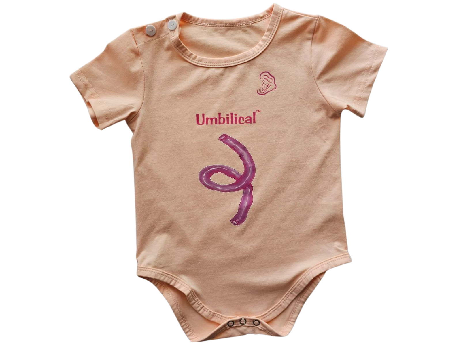 Umbilical light pink Onesie with magenta writing